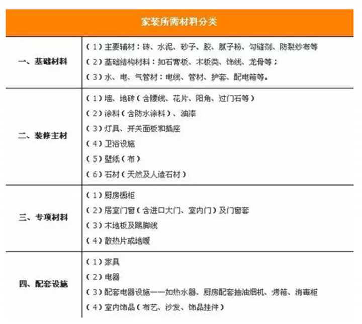 清楚自家的裝修方式,再按照裝修清單購買才是明智業主的做法。