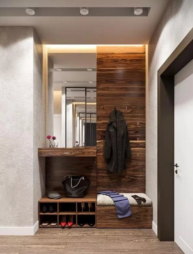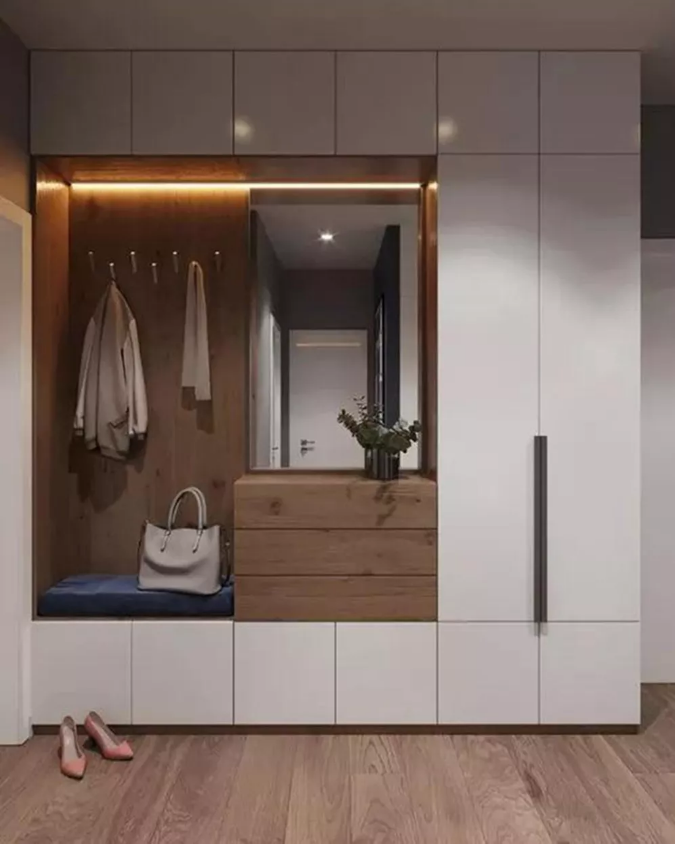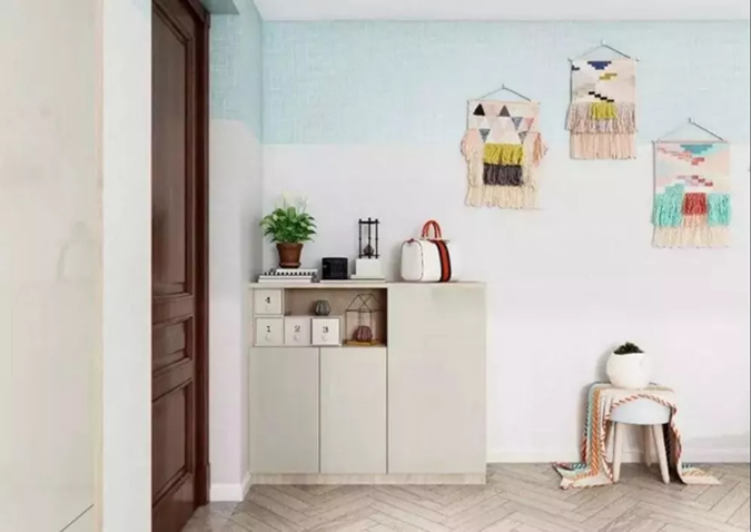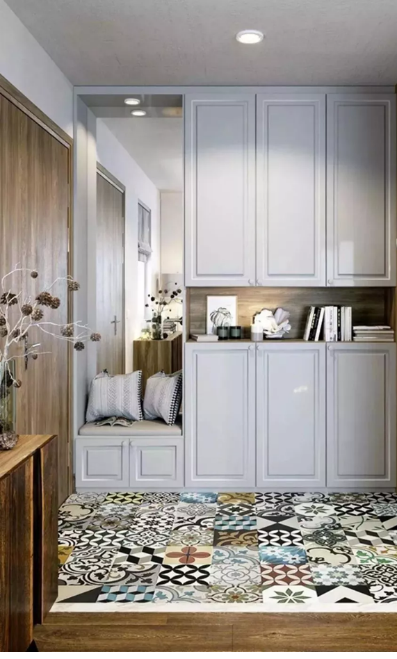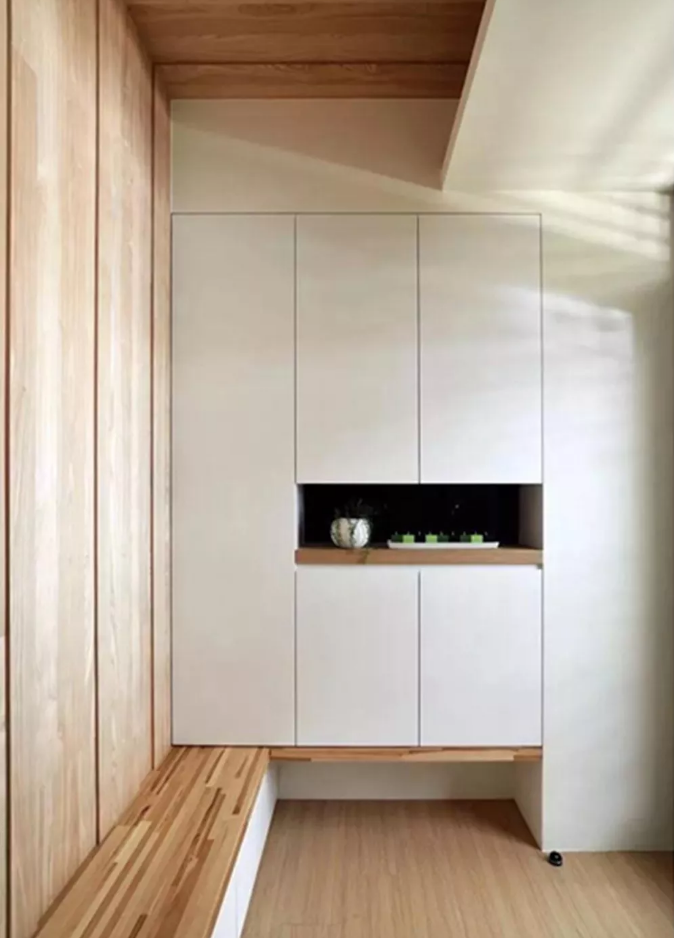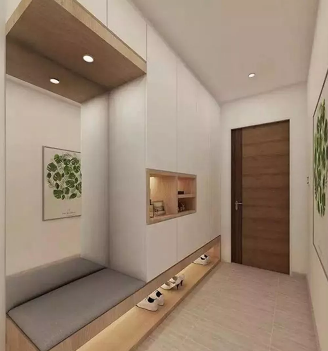 早幾年裝修,人們還沒有太多定制柜的概念,通常就在門廳處設置一個小鞋柜,解決進出戶的藏鞋需求,有的是木工打制,有的是家居賣場買來的成品柜。例如這種。↓↓↓