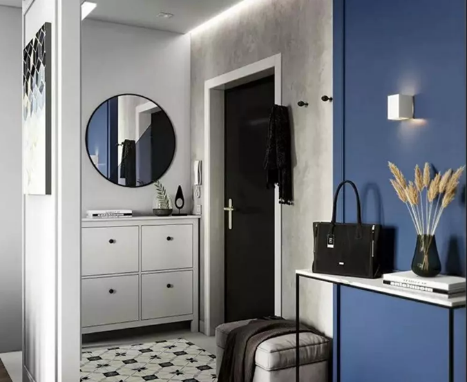 選一面橢圓形的試衣鏡放在玄關,相當漂亮實用,對于女主人來說簡直是夢寐以求,出門前在鏡子跟前調整著裝、妝容,也能看到空間里其他人的行走。