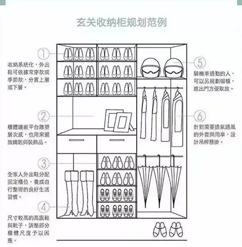 下面是一份比較實用的玄關柜內部功能規劃圖,僅供參考了。↓↓↓