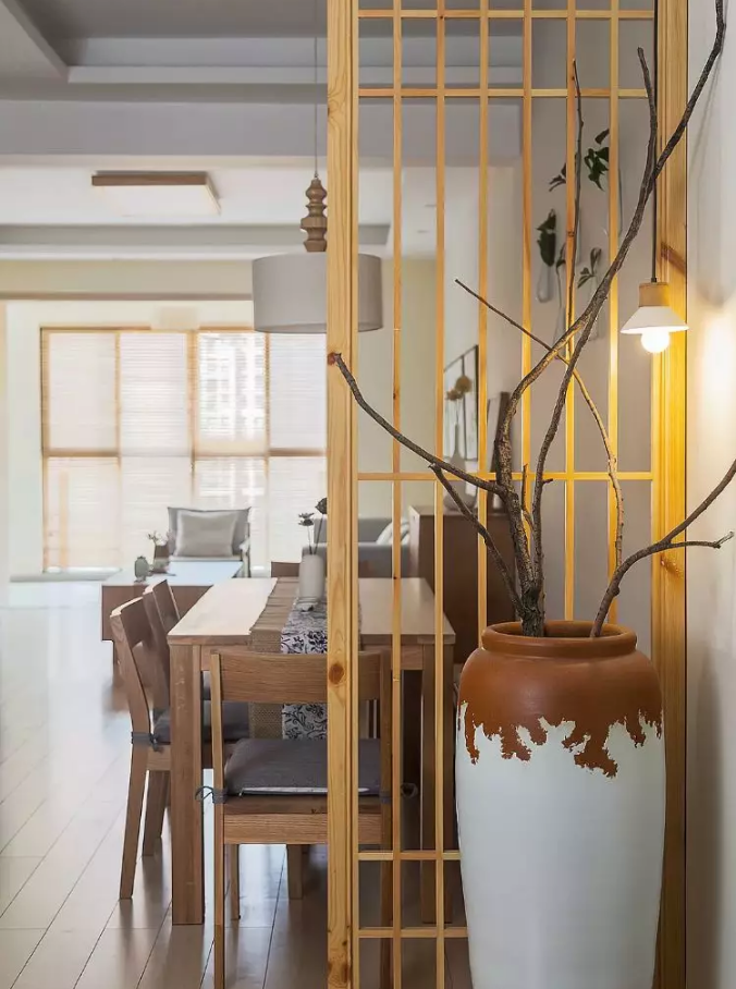 玄關隔斷:玄關作為入戶第一眼看到的空間,決定著進入門后的情緒感受。玄關隔斷需注意以淺色系配色為主,隔斷的設計可避免公共區(qū)域處一覽無遺的狀態(tài),無形中增加空間趣味性,且保護主人隱私。