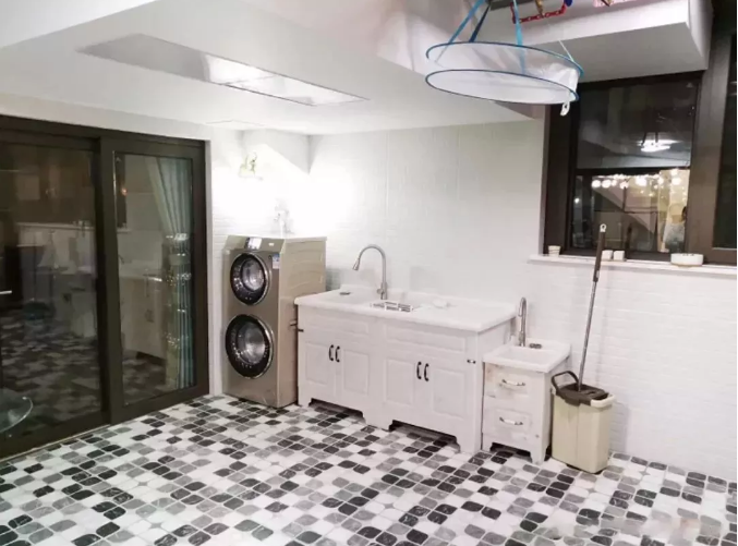 還有一些家里陽臺是屬于露臺的戶型,那么空間就更為充足了,洗衣機(jī)、洗手臺和柜子都可以擺放得更為隨意一些,留空的區(qū)域也可以作為休閑區(qū)來使用。