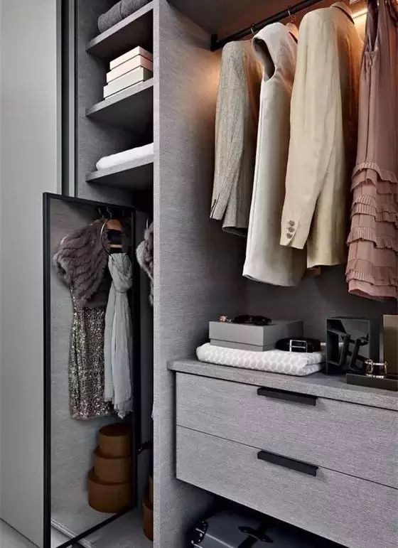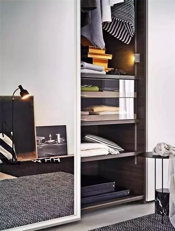 內衣、領帶和襪子可用專用的小格子,既有利于衣物保養,取物也更直觀方便;毛衣可放在較深的抽屜里;褲子則用專用的掛架存放。