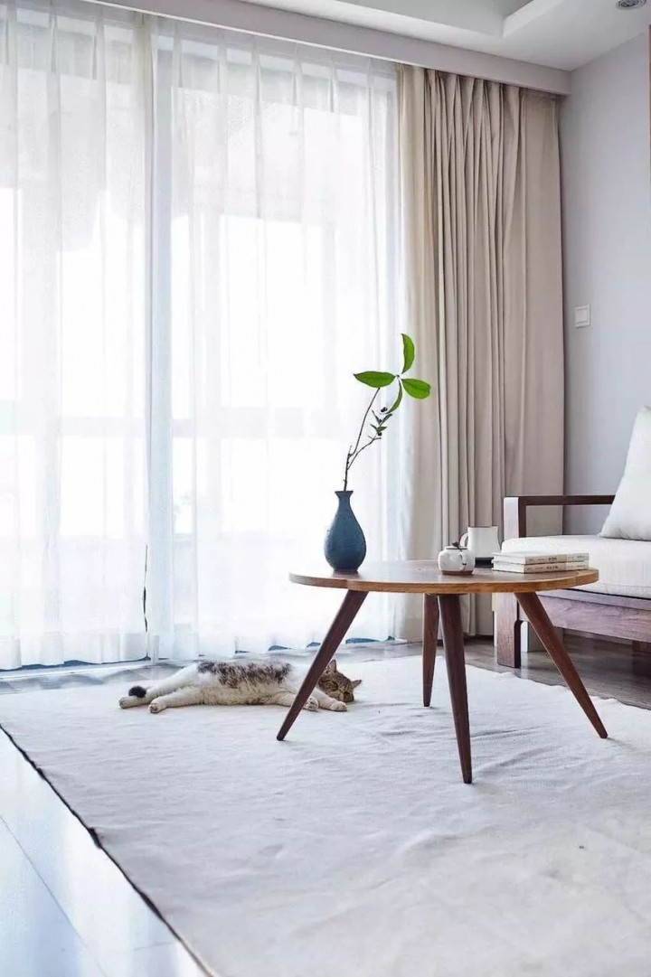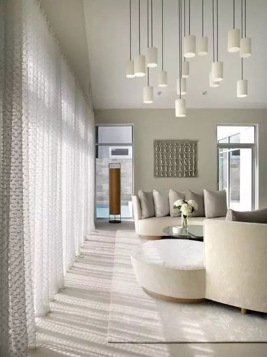 飄逸的淺色調輕紗儀態萬方,重量小也易于清洗打理;如果要凸顯漂浮感,簾布就以不貼地面為宜。