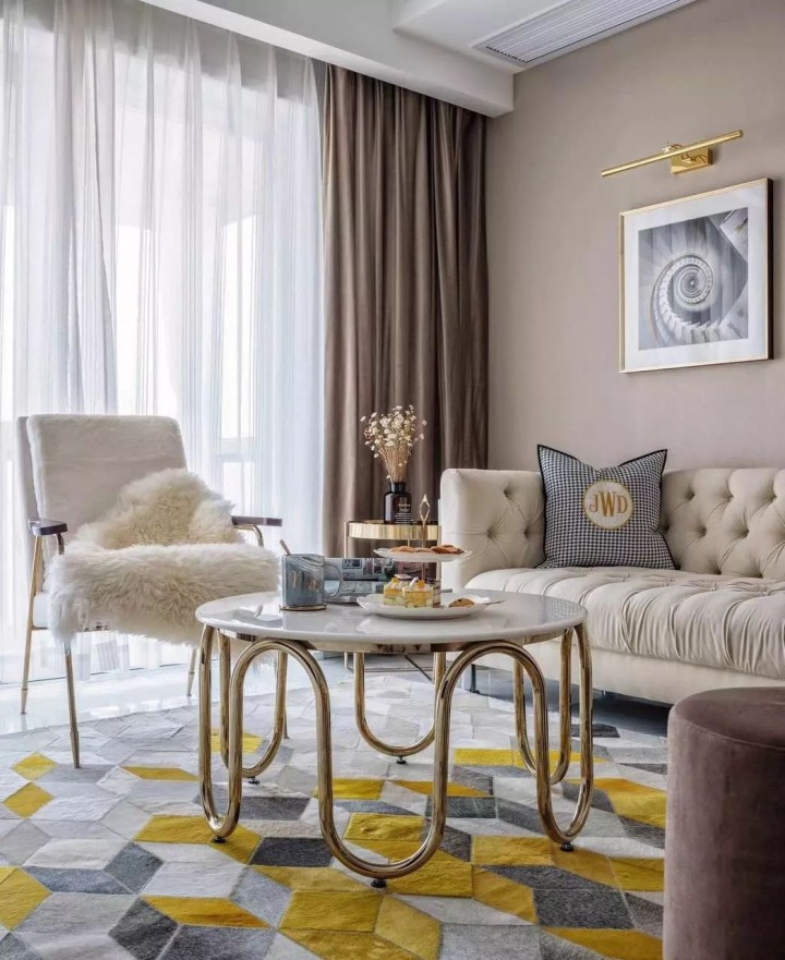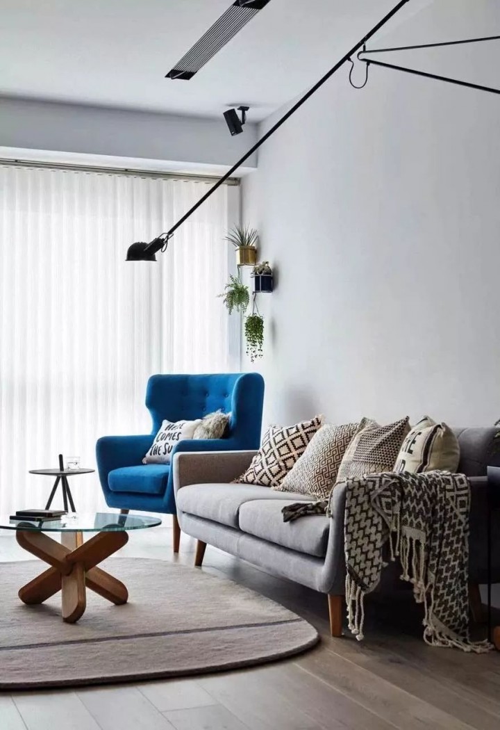 一般來說,客廳承擔活動性功能多,起居之外常兼具會客、娛樂等較公共的用途,因而需要打造通透、敞亮的空間視感。半透的薄布、輕紗往往會很實用。