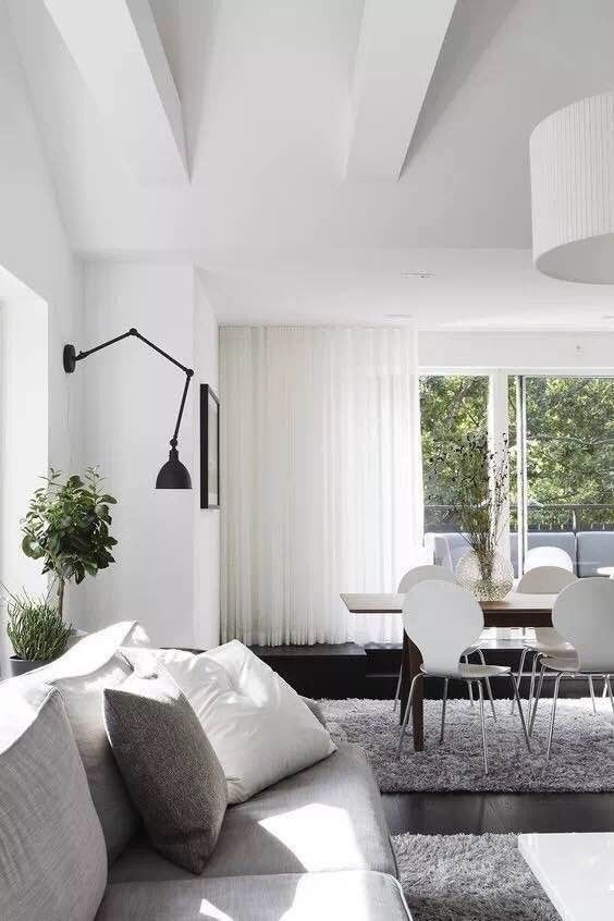 米色或者白色的凈色紗簾,是最好的推薦,百搭經典,薄的飄逸朦朧,厚點兒的垂感質感好,當陽光投射進來的時候,無敵光影才是最美的!