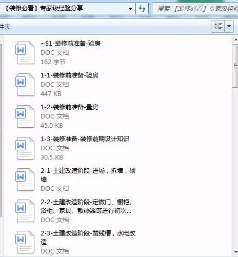 整套的資料一共包含小戶型設計、二手房改造指南、裝修流程視頻還有各種裝修風格的經典案例。
