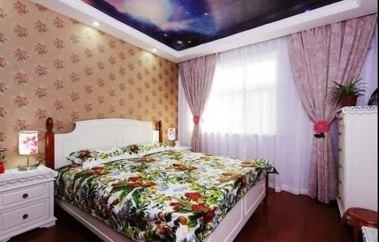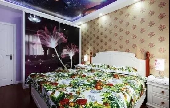 臥室,一打開門我簡直覺得眼睛被亮瞎了!這......這布置得真是絕了!花背景墻,艷麗的床單,庸俗的粉窗簾,雖然知道這一定是婆婆用心裝飾的,但是既然是我們的房間,是不是可以稍微詢問一下我的意見呢?