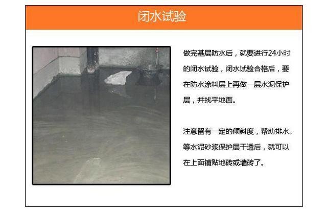 2、防水試驗(yàn)要做到位,閉水試驗(yàn)的時(shí)間最好是在24~48小時(shí),水淹沒(méi)地面的高度,最少要有3cm。