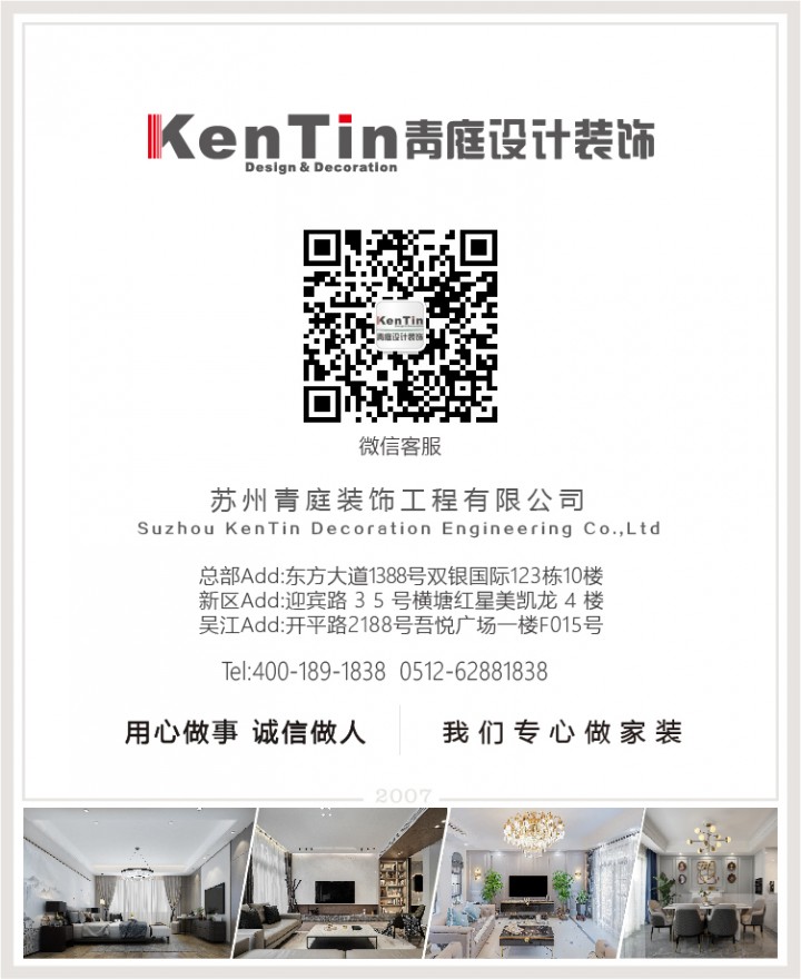 蘇州青庭裝飾工程有限公司是蘇州專業(yè)從事室內(nèi)裝潢設(shè)計和施工的企業(yè)之一。公司擁有強(qiáng)效的設(shè)計團(tuán)隊(duì)和施工團(tuán)隊(duì),秉承“設(shè)計以人為本,設(shè)計為人人服務(wù)”的設(shè)計理念,專為高檔家居、別墅、婚房、二手房、辦公用房等裝修設(shè)計。時尚卓越的裝修團(tuán)隊(duì),優(yōu)質(zhì)工程不斷的產(chǎn)生,取得了非常好的社會口碑。