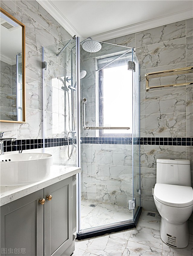 一些注重衛(wèi)生間顏值的家庭,會選擇耐水石膏板吊頂,看看下面這些裝修效果圖,確實比鋁扣板高大上了不少。