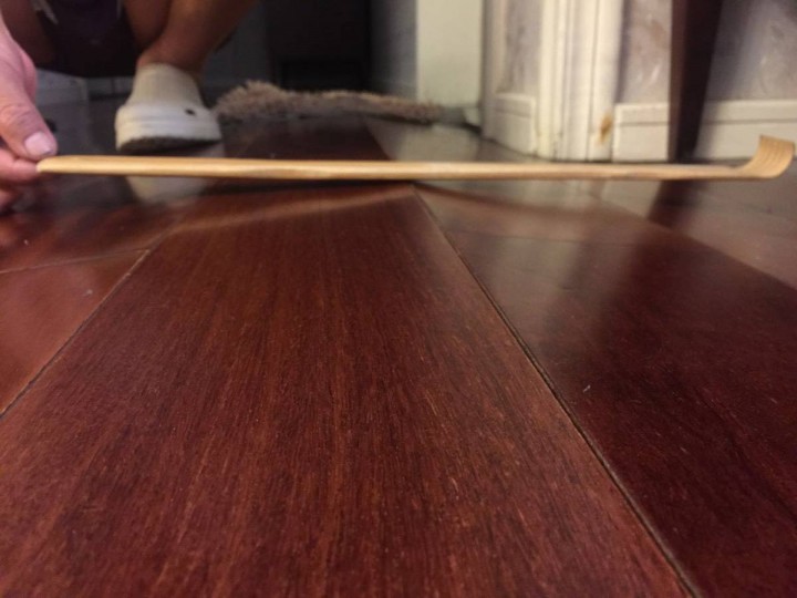 之前辦公的地方,鋪的木地板就向上拱起了,視覺上不很明顯,但走起路來能明顯感覺“凸”起的一塊。