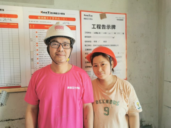 魏師傅和戴姐就是這個群體的一員,他們是青庭裝飾的瓦工。兩個人都是80后,是工地上比較少見的年輕人。魏師傅專業(yè)功底非常好,聊起材料與工藝都如數(shù)家珍。