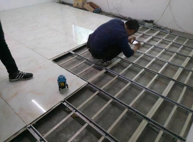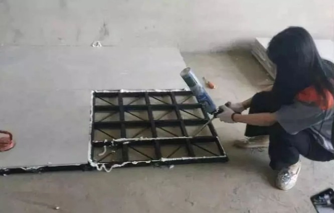 框架是一個拼接的模式,對于地面的平整度并沒有那么高,方便,鋪貼起來的速度自然也就快了不少。上面提及的用長螺釘固定,除了保證整體結實性之外,也能防止瓷磚偏移。