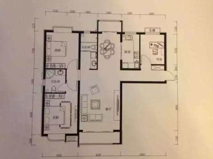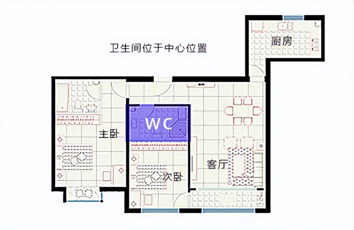 二、衛(wèi)生間在房子中間的戶(hù)型