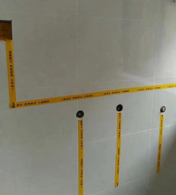 瓷磚鋪貼后,一定要讓師傅標記好水管的位置,自己也記得現場拍照留案,不然后期萬一打孔,打到水管就不好啦,標記了可以避開。
