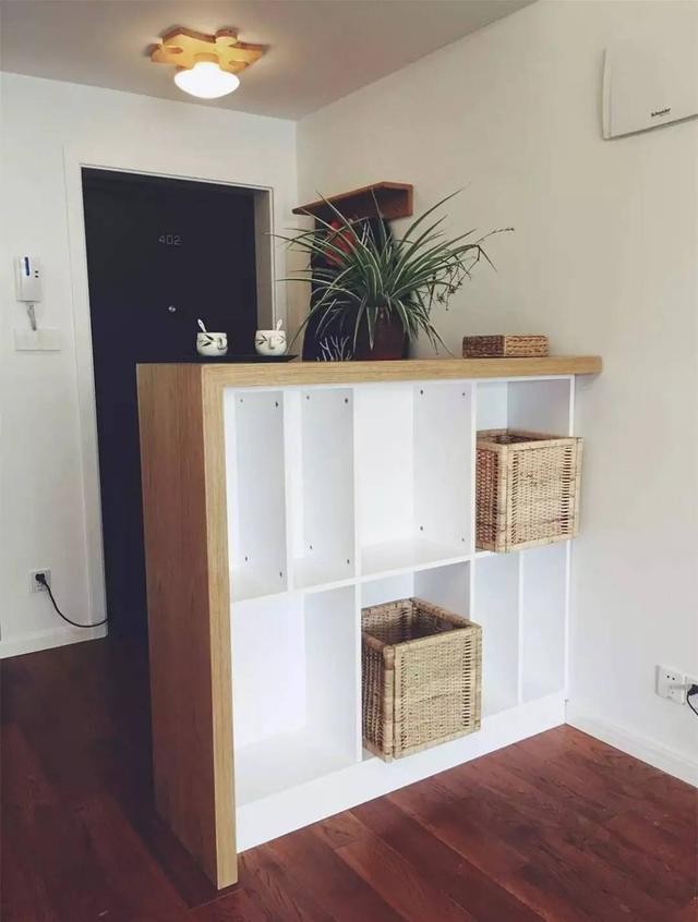 再比如,可以直接上屏風。鞋柜可以靠墻放,也可以放在屏風前面。