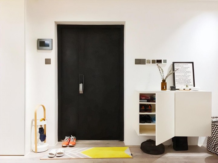 這兩種戶型,除了沒有玄關不方便之外,還有就是開門就能看到室內布置,私密性差一點。所以,自造玄關就是要利用鞋柜造出一個好用的玄關,同時對室內布置起到隔檔緩沖的作用。