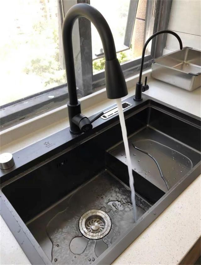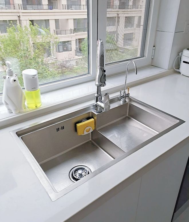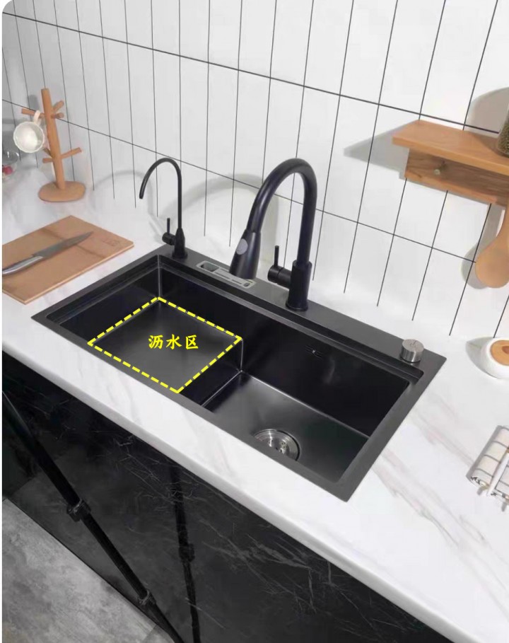 階梯式水槽看起來簡單,實際上帶有很多小細節,比如臺階采用<1°的微坡度引流,能避免積水;水槽要是一體沖壓成型的,減少衛生死角;另外臺階的高度大概是水槽深度的一半,太高容易影響清洗鍋具。
