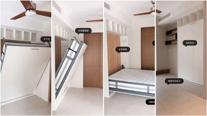 ②每次將隱形床“收起來”,必然要重新收拾床褥,整個過程體驗非常不人性化。而且現實生活中,隱形床絕大多數時間都是被當普通大床使用,根本不會被“隱形”。
