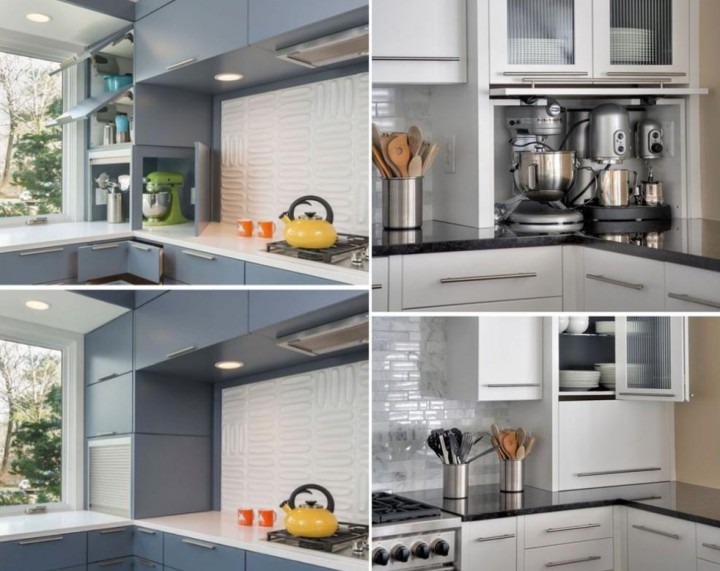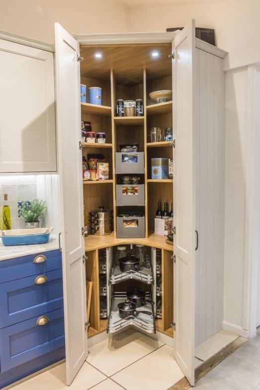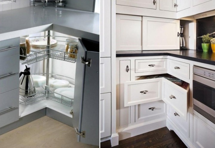 地柜的轉(zhuǎn)角傳統(tǒng)的隔板,肯定不適合,可以定制一些轉(zhuǎn)角抽屜或者轉(zhuǎn)角拉籃,能更有效的利用,簡單的改變,可增加不少的收納量。