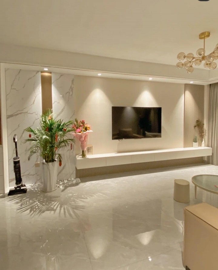 電視柜采用了懸掛式設計,打破了空間固有的格局。懸浮的視覺感突出了整體空間的通透感,可以放大空間感知,使空間更加美觀靈活。由內而外的設計感,讓空間里的家具更加高級,坐在沙發上也能得到更輕盈純粹的視覺享受。