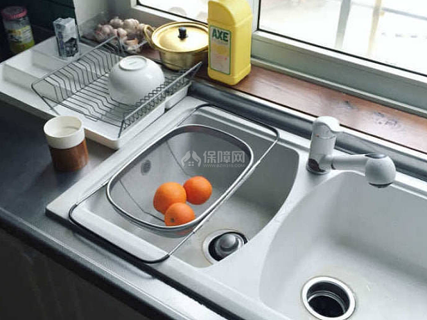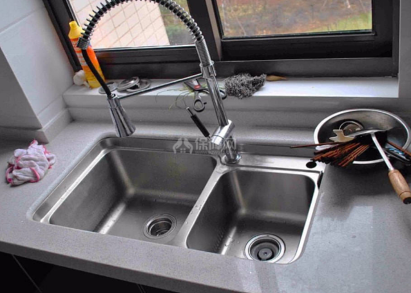 因為水槽和臺面保持平齊,所以食物殘渣可以輕松用抹布抹到水槽里面,基本不存在衛生死角。