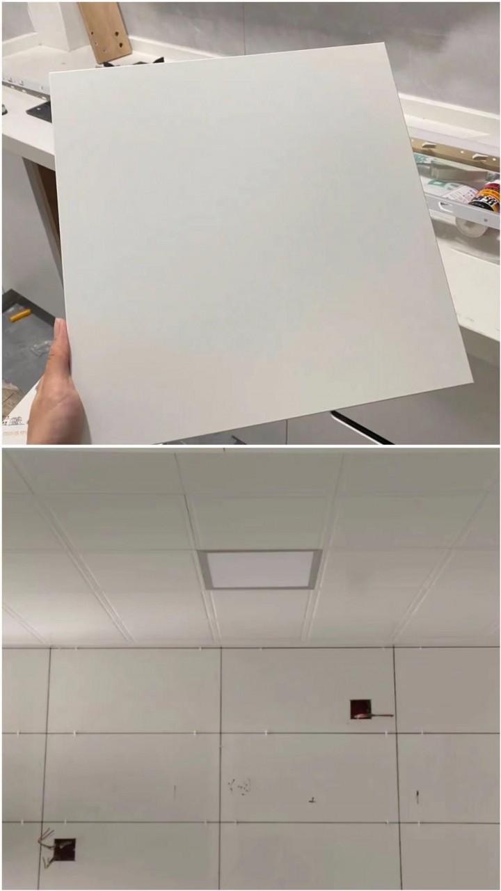 順便說一下,選擇鋁扣板的時候,最好選擇純白、無邊框的樣式,這樣的鋁扣板吊頂完成后美觀度很高。
