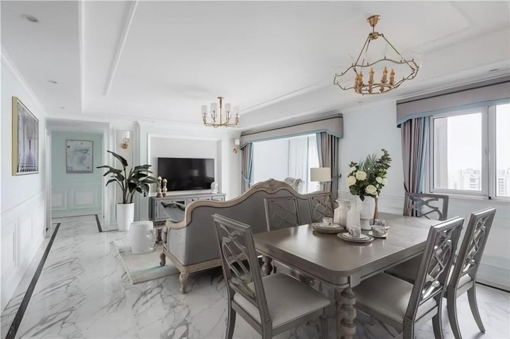 現(xiàn)在都喜歡橫廳戶型,主要原因就是它既保持了餐廳的獨(dú)立性,又增加了客廳的空間感,還使得各個(gè)房間都能自然采光,不再受制于房間之間的分隔,顯得寬敞明亮,使人感到舒適。