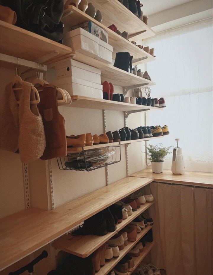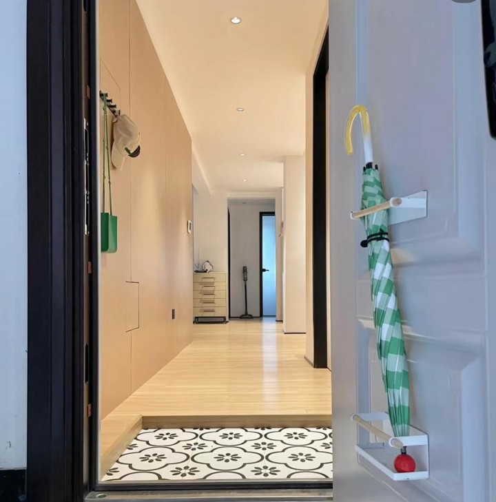 這樣滿足了收納空間的需求之余,還能確保東西不會被帶入室內,以最大程度保持室內的干凈和整潔,拒絕灰塵進入家中,甚至還不需要另外做鞋柜。