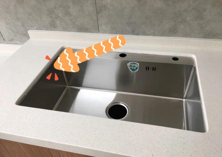 臺下盆是性價比最高的,外觀看不到水槽邊緣,整個嵌在臺面以下。但是用手摸,還是能摸到臺面下沿有一圈玻璃膠,這里的玻璃膠也會發霉,只不過是眼不見心不煩。