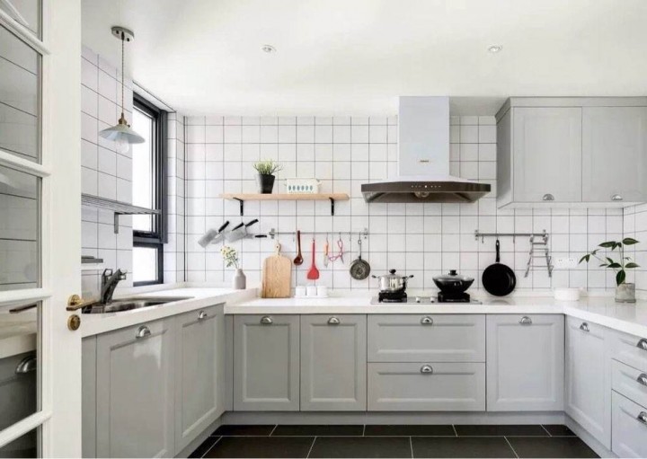 黑白純色瓷磚用在洗手間與廚房比較多,常規規格的白色瓷磚,建議用白色就好。但是近些年流行面積小的黑色或者白色磚,再加上反差色的美縫劑,會有種強烈的視覺沖擊效果。也就是說,白磚用黑色美縫,黑磚用白色美縫。