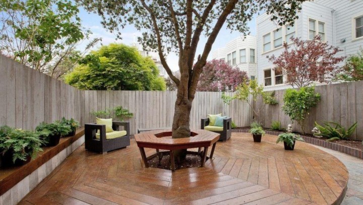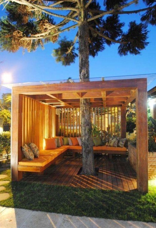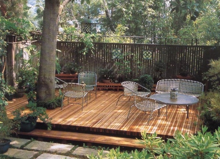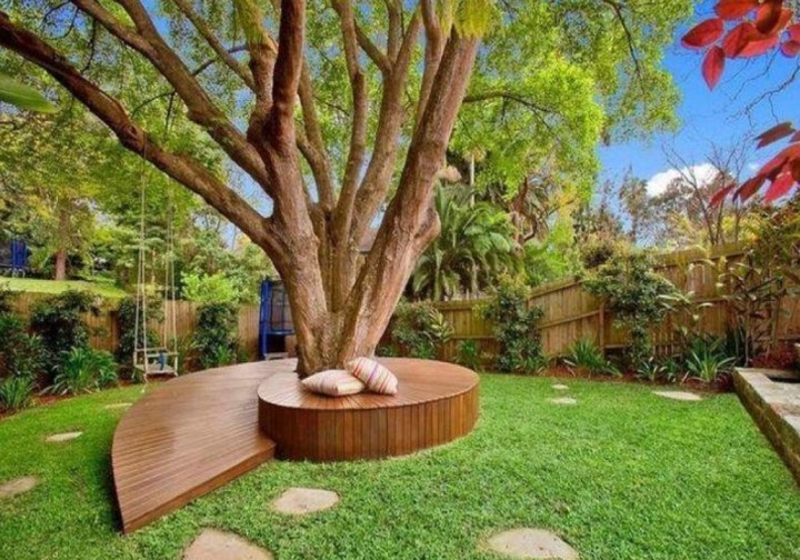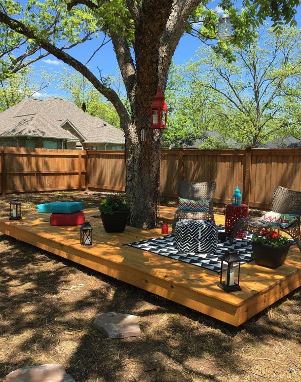 利用地臺的可調整性,或大或小,都可以滿足日常的使用需求。遇到小院子,可以如如上圖這樣,樹下作為休閑區也是很好的。結合草地一起使用,這簡直不要太爽了。