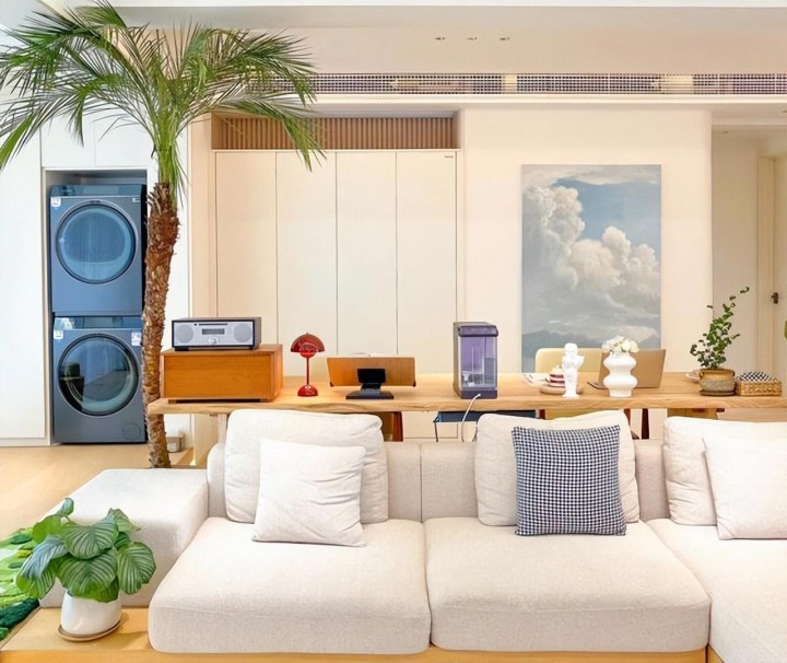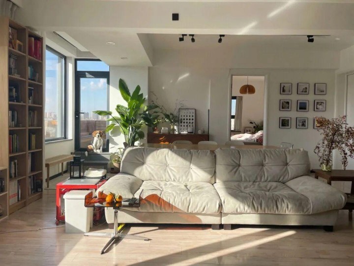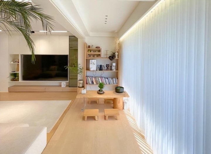100平三居室裝修設計,OldEast和大叔現在的家,面積100㎡,是一套傳統的三室兩廳,整體基調是原木風+白色+淺灰的搭配,整體高級又干凈。 他們在改造時砸掉一間臥室,將原本的公區變成了7.5m長的大橫廳,采光也比之前好了不少,面積已經接近50㎡了。