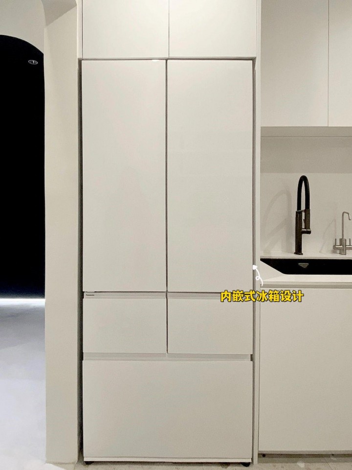 現在比較流行內嵌式冰箱設計,做法是將冰箱和柜子融合在一起,有著節省空間、美觀大氣的優點。