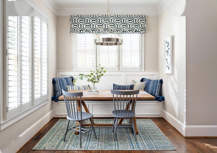 餐桌一側設卡座增容,處理到位的話,上面坐人下面收納,這不也挺不錯的嗎?
