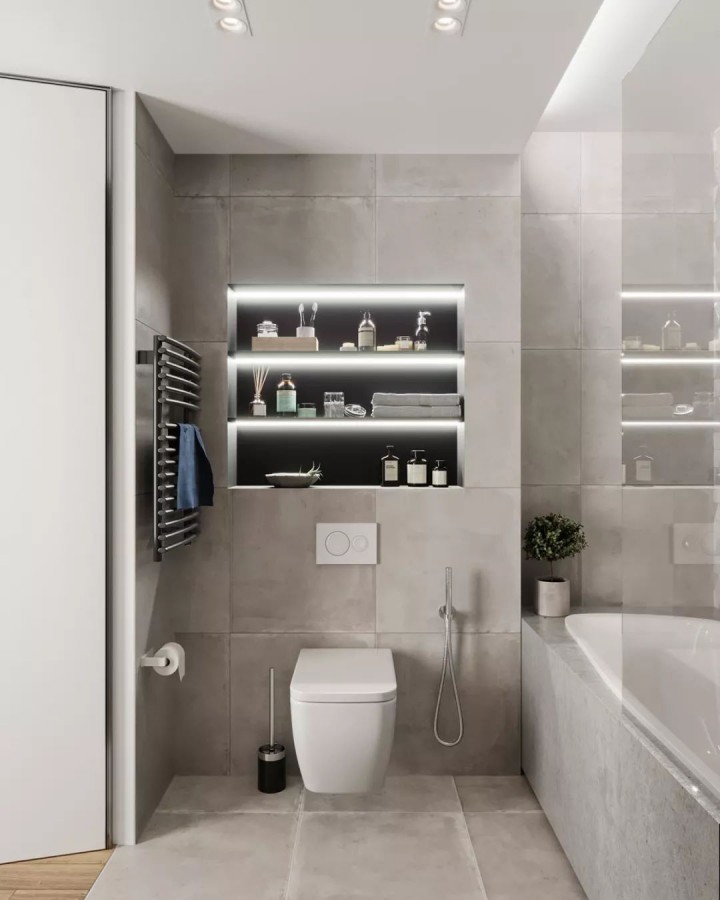 也不知道是什么原因,十多年前因老土被嫌棄的壁龕,突然在近兩年又火了起來(lái)。一下子一堆人都爭(zhēng)相模仿要在衛(wèi)生間里做壁龕來(lái)收納沐浴露、洗發(fā)水等瓶瓶罐罐,甚至有些不滿足條件做壁龕的,也不惜為了它再砌一堵墻來(lái)做。
