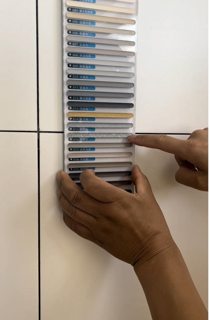 當時我在網上了解到美縫是可以自己DIY的,但是會比較費腰,所以我最后還是花錢找美縫師傅去做。我家客廳鋪的是淺灰色的瓷磚,我希望師傅給我用灰色的美縫,因為網上說美縫的顏色要和瓷磚顏色相近。但是,師傅果斷拒絕了我的提議,反而提議用“貴族銀”,說這個顏色不僅百搭,現在還特別流行。