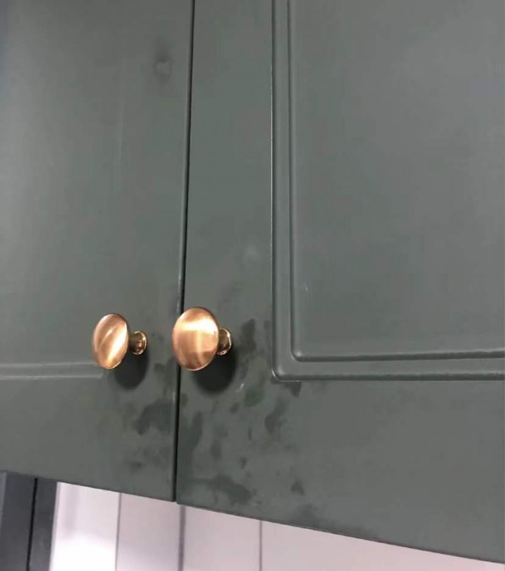 總之,從臟了的那一刻起,膚感膜的顏值就再也回不去了。如果裝在廚房那就更慘了,還有各種油煙、手印,用上幾個月就慘不忍睹。所以,入住后,我是絕對不推薦這種設計的。只有真正住過家的人才懂,實用+省事才是最讓人舒服的。
