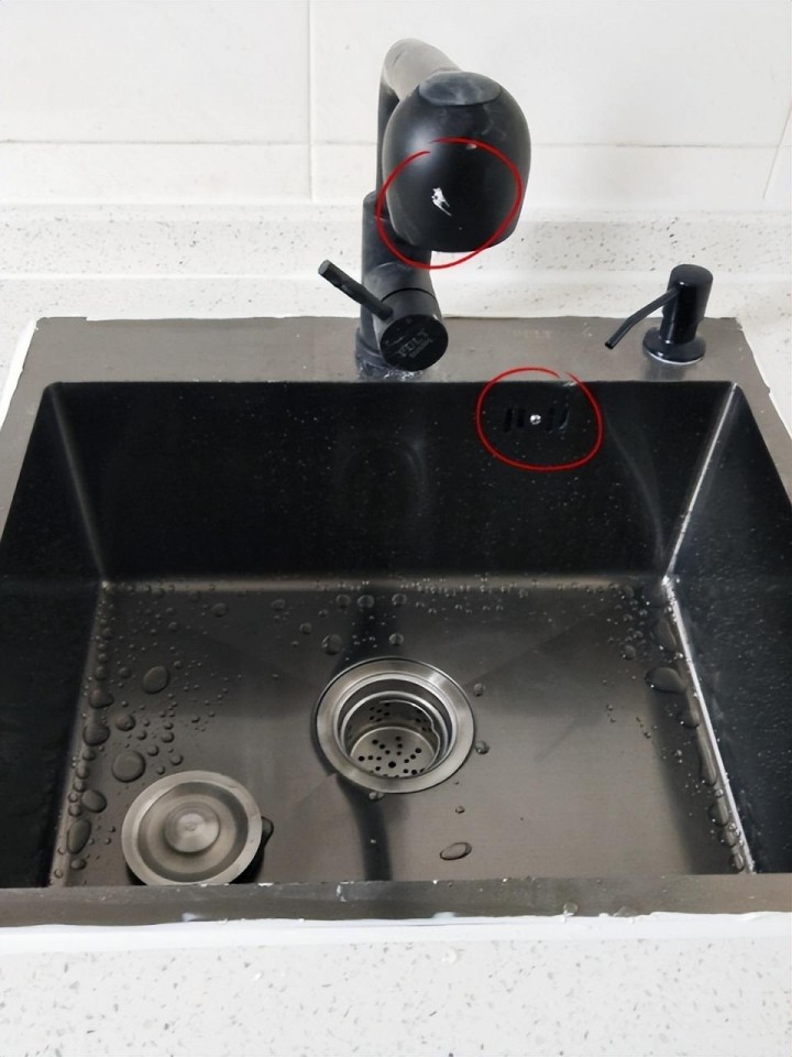 還有些“網(wǎng)紅”家里用的是帶顏色的水槽,比如黑色。這種顏色是鍍上的一層漆,雖然不怕水,但是容易被磕碰、剮蹭。新水槽好看,兩年以后看起來就會破破爛爛的。