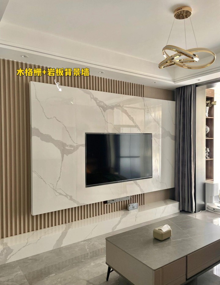 把巖板和木柵格結合在一起,既有巖板的高級感,又加入了木質的溫潤感,有著非常好的可塑性。