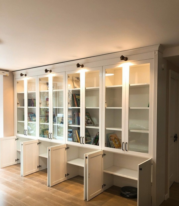 如果不喜歡封閉式的書柜,可以考慮在書柜上加上玻璃門,這樣可以避免書柜看起來臟兮兮的。