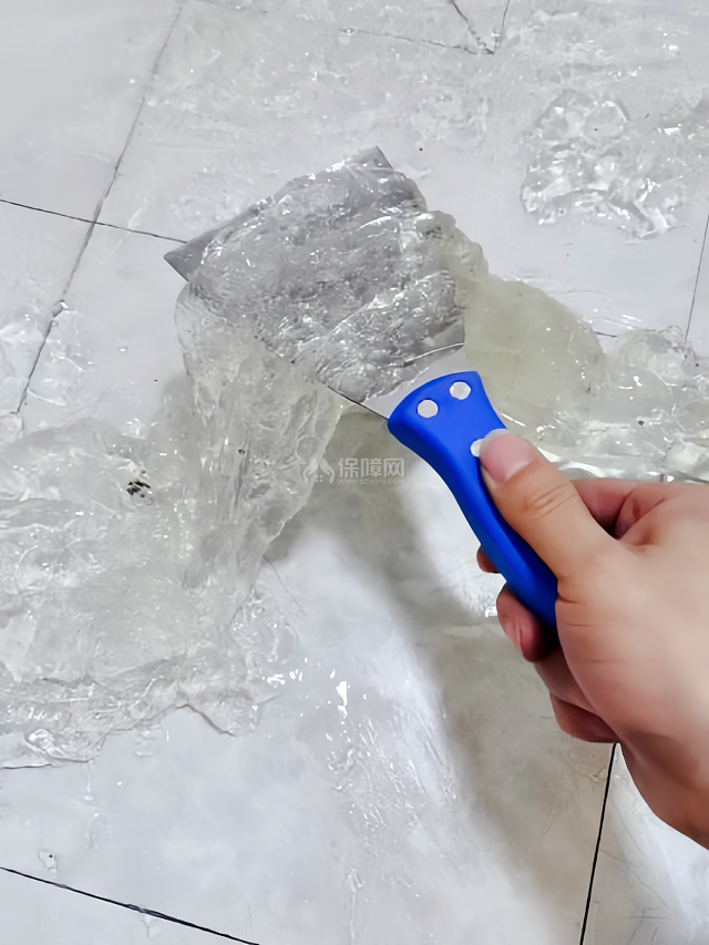 我選擇的第二種方法,就是果凍膠。施工的時候不難,把地漏封住以后在地面上倒?jié)M果凍膠就行了(像做蓄水實(shí)驗(yàn)一樣)。第二天液體的果凍膠會變成果凍狀,把它們清理掉即可。