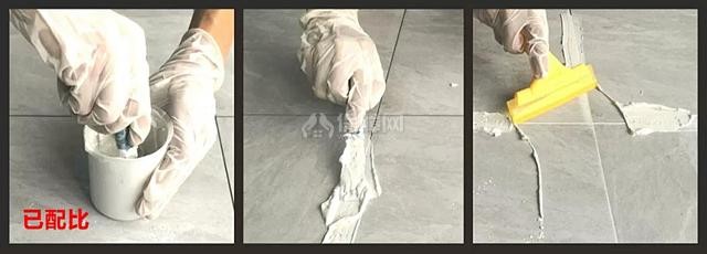 于是就出現(xiàn)了一種專門堵瓷磚縫的防水劑:把它像刮膩?zhàn)右粯庸芜M(jìn)瓷磚縫里,干燥后變成白色的、觸感像膠一樣的東西。除了能防水以外,還能充當(dāng)瓷磚美縫劑。