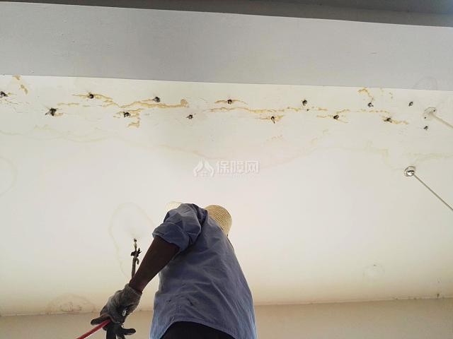 后來漏水范圍變大了,再用果凍膠就無效了。于是我就選擇了高壓注漿防水:這次自己沒法施工了,找來了專業(yè)人員,在樓下天花板上打眼,把防水漿料注入天花板。