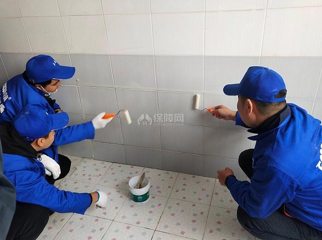 一些比較知名的家政服務(wù)公司,采用的都是這種補(bǔ)漏方式。施工時需要把防水膠均勻地噴涂在瓷磚表面,不平的地方在干燥后會非常明顯,所以不能自己施工。