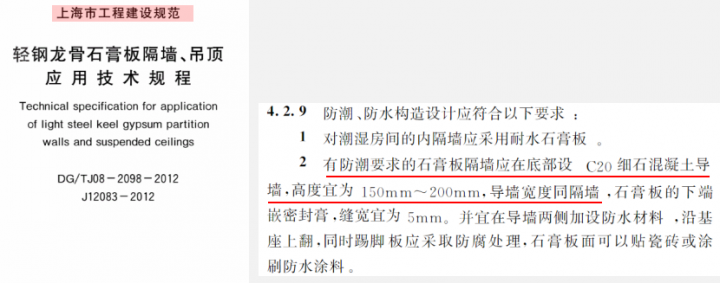 除了國家建筑圖集,地方規(guī)范,上海市的工程建設(shè)規(guī)范,在4.2.9中也提到了使用C20細(xì)石混凝土作為導(dǎo)墻,高度宜為150-200mm。