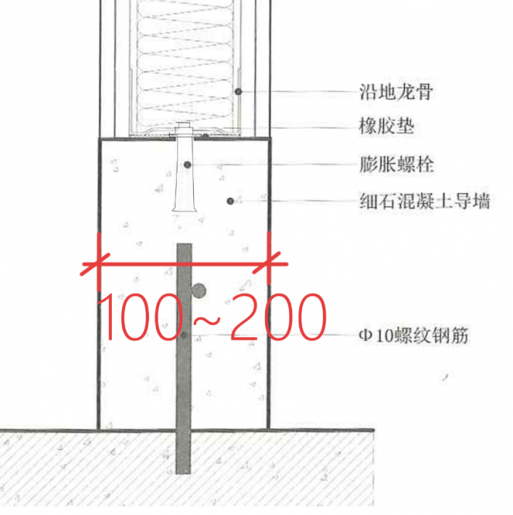 2、超薄隔墻地梁做法:當(dāng)?shù)亓簩挾龋?00時,建議做法如下: