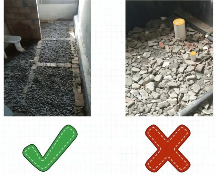6.衛(wèi)生間回填要在場,一定要用陶粒填充不能用建筑垃圾。陶粒是一種質(zhì)輕的材料,能減輕衛(wèi)生間的整體重量負荷,降低對建筑結(jié)構(gòu)的壓力。它具有良好的吸水性和透氣性,能吸收多余水分并保持一定的干燥度,減少潮濕環(huán)境帶來的不利影響,降低滲漏的風險。同時,陶粒內(nèi)部多孔,有一定的隔音效果,能減少排水等聲音的傳遞。此外,陶粒化學性質(zhì)穩(wěn)定,不會輕易發(fā)生化學反應(yīng)而變質(zhì),耐久性較好,能夠長期保持良好的性能。并且,陶粒的顆粒大小均勻,易于施工操作和保證回填的均勻性。