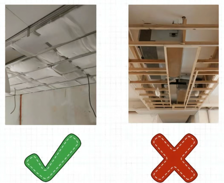 3.吊頂一定要在場,檢查是否有加隔音棉。一是為了有效阻隔聲音的傳播。可以降低樓上活動產(chǎn)生的腳步聲、物體掉落聲等噪音對室內(nèi)的影響,提升室內(nèi)環(huán)境的安靜程度,尤其對于居住在公寓樓等環(huán)境中的人來說非常重要。二是增強室內(nèi)的聲學效果。減少聲音的反射和混響,讓聲音聽起來更加清晰、舒適,改善室內(nèi)的聽覺感受。三是起到一定的保溫隔熱作用。在一定程度上減少室內(nèi)外熱量的交換,保持室內(nèi)溫度相對穩(wěn)定,同時也能在一定程度上節(jié)省能源。